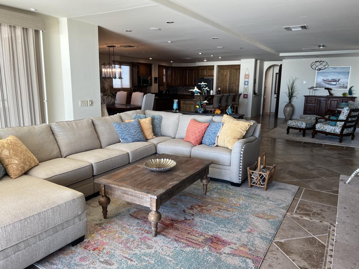Újonnan felújított társasházi lakás új bútorokkal és készülékekkel a Sandy Beach-i Casa Blancában. Ez egy rövid séta az üdülőhely ösvényein, a 18 lyukú golfpályán a strandra. Élvezd a három üdülőhely medencéjének egyikét, a strandot, vagy csak pihenj a lakás tágas teraszán, ahonnan csodálatos kilátás nyílik a városra és a Cortez-tengerre. A lakás kényelmes elrendezésű, szépen berendezett és felszerelt a tökéletes tartózkodáshoz. Direct tv provided to LR & Mr br. Okostévé br 2-ben a közvetítéshez.