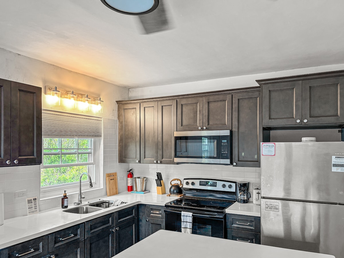 Breezy Hideaway offers 2 queen bedrooms, 1 bath, a fully equipped kitchen, a futon for an extra guest, air conditioning in every room, and a washer/dryer. Recently renovated, everything is modern and fresh. Just a 3-min walk to a gorgeous beach and 1-min to a bus stop, it's perfectly located near restaurants in Dockyard and a grocery store less than a mile away. Ideal for business travelers, families, or couples, it’s your comfortable and convenient Bermuda retreat!