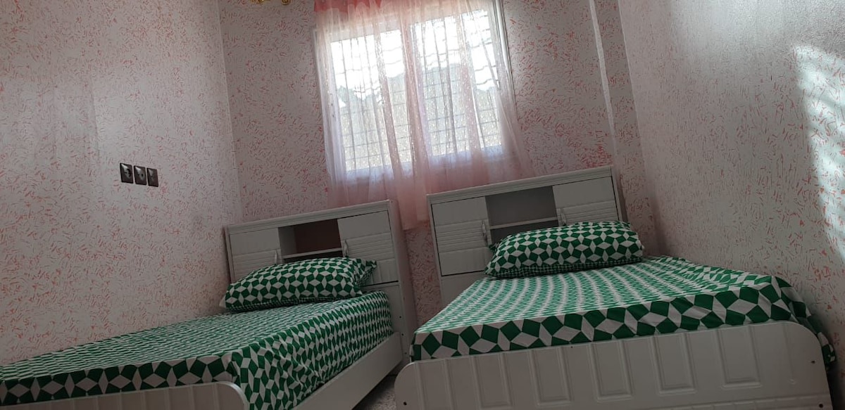 Rest with your family or friends in this 3 bedroom apartment (including 3 double beds), a fully equipped kitchen with a new washing machine, large fridge, cooker and oven. This neighbourhood is in the outskirts of Fes in a developing, peaceful and quiet neighbourhood. The supermarkets and airport 10 minutes away by car. If taxis are your form of transport then this location is not suitable. Please note we don't accept unmarried couples Area: Jinane Extension, Fes, near PEAGE AUTOROUTE FES
