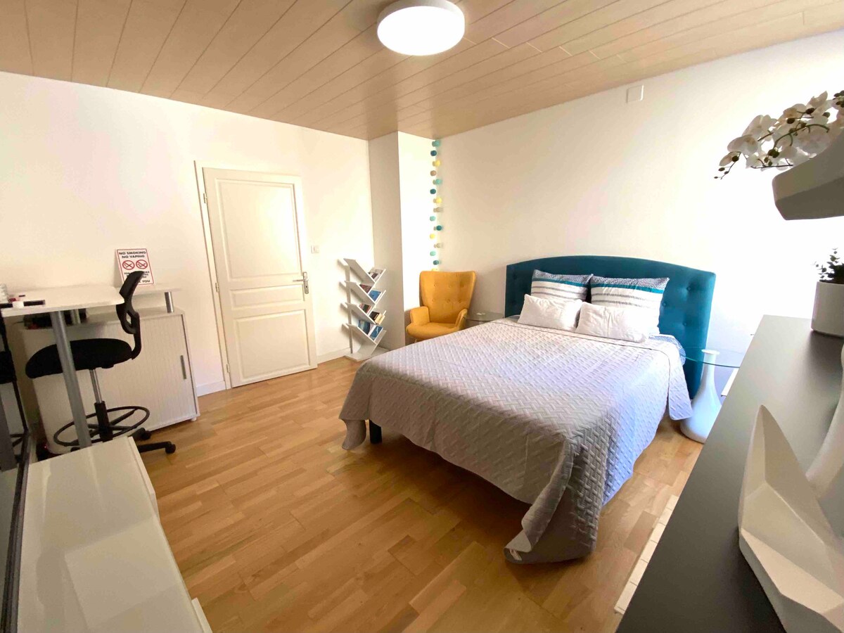Elbűvölő, 60 m2-es lakás, teljesen felszerelt Huningue belvárosában • 2 nagyon kényelmes ágy 4 főnek • 1 privát parkolóhely karikával • Near Place Abbatucci, Parc des Eaux Vives, Passerelle des Trois Pays, Borders Suisse (Basel), Németország (Weil am Rhein), EuroAirport Airport 10 percre • Éttermek, bárok, kényelmi szolgáltatások, busz/villamos Bázel és SBB állomás • Ideális nyaralóknak, határmunkásoknak • Beszélünk franciául, németül, angolul.