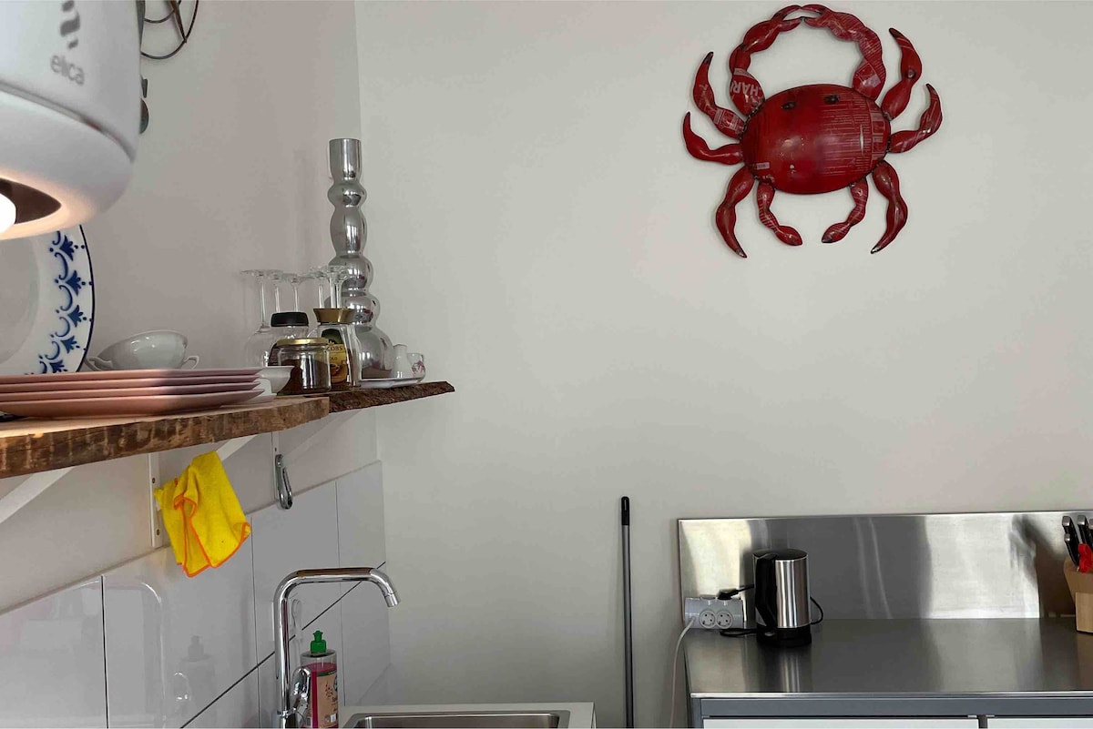 Ez a lakás a földszinten található. Minden alapvető szükséglet megvan egy rövid tartózkodáshoz. 🚂 Vasútállomás: kb. 10 perc sétára 🎤 Koncertház: kb. 30 perc sétára 🚗 Parkolás: a főút közelében lehetséges ⚠️ A hálószoba a többi helyiségtől a folyosóval van elválasztva. ⚠️ Vedd figyelembe, hogy a mennyezet nagyon alacsony, különösen a hálószobában. Ügyelj rá, hogy ne sérülj meg a fejed.