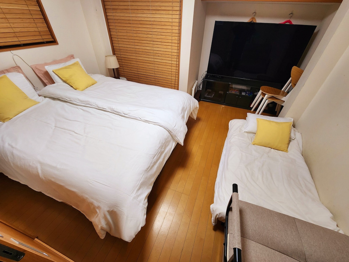 Köszönjük, hogy érdeklődsz. Körülbelül 10-15 perc sétára van a Sannomiya állomástól. Nagyképernyős tévé 65-ös méretben. A menügomb segítségével nézheted a YouTube-ot, a Netflixet stb. Két egyszemélyes ágy, valamint futonágy és futonágy legfeljebb 3 személy elszállásolására alkalmas. Két egyszemélyes ágy van csatlakoztatva. Ez egy nagy ágy, amelynek szélessége 200 cm × 200 cm. Egyetlen futonágyat biztosítunk egy személy számára. Cseréld le a futonhuzatot, a párnahuzatot, a párnahuzatot, az ágyneműt és az összes huzatot. 1 fürdőszobai törülközőt és 1 arctörlőt biztosítunk, de ha többre van szükséged, értesíts minket előre. A közelben számos ízletes és otthonos étterem található. Kávét és reggelt egy közeli kávézóban szolgálhatsz fel. Ingyenes parkolás 1 Nem érhető el, ha több szobát üzemeltet, és más ügyfelek megállítják. Egyeztess velem előre.
