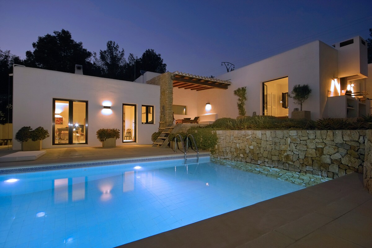 Can Rin, exkluzív villa saját kerttel és medencével, óceánra és San Antonio Bay-re néző kilátással. Ideális helyen található, egy nagyon csendes, és válassza ki a lakókomplexum, ahol élvezheti a napot és a természetet. A ház tágas, kényelmes és elegáns, mediterrán stílusú és minden benne van a minőség. Nagyon jól kapcsolódik Ibiza autópályán, nagyon közel a Sant Josep és a legjobb strandok, közel a szokásos szolgáltatásokat.
