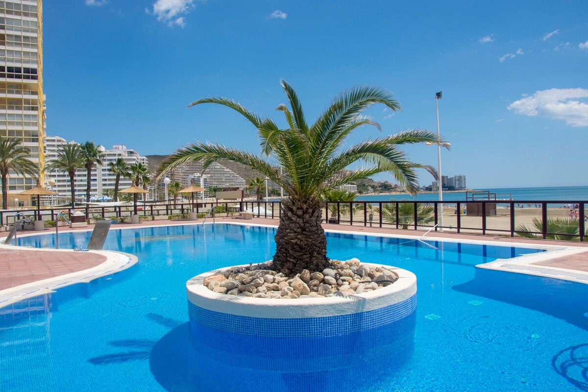 Takarítás és fertőtlenítés hipóval az érkezésed előtt! A lakás a FLORAZAR 5 épületében található, mindössze 10 méterre a strandtól, közvetlen hozzáféréssel a sétányról🌊. Frissen felújított, terasszal, ahonnan hihetetlen kilátás nyílik a Földközi-tengerre. 3 hálószobája van, mindegyik terasszal és nagyon világos, két teljes fürdőszoba, WIFI, egy hihetetlen medence kilátással az óceánra, parkoló az épületen belül, paddle tenisz, tenisz, társasági klub és gyermekpark.