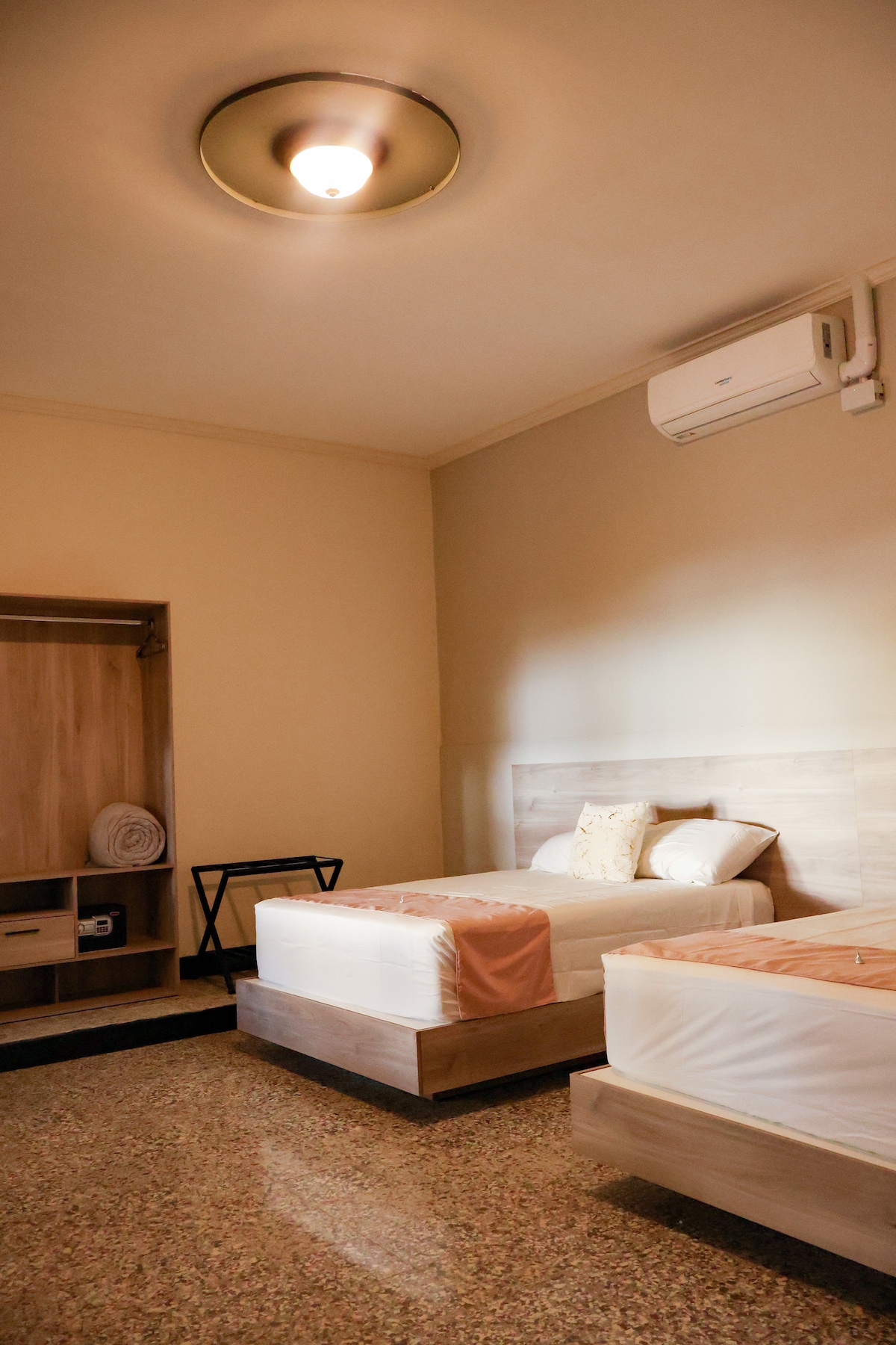 Disfruta una estadía cómoda y tranquila en nuestro alojamiento con 12 habitaciones (sencillas, dobles y suite), diseñadas para tu descanso. Todas cuentan con aire acondicionado, TV con cable, WiFi gratuito, baño privado y amenidades esenciales. Tu reserva incluye desayuno, impuestos, agua de cortesía, acceso a terrazas, parqueo externo, seguridad 24/7 y servicio de limpieza diario. Un espacio pensado para que te relajes y disfrutes cada momento.