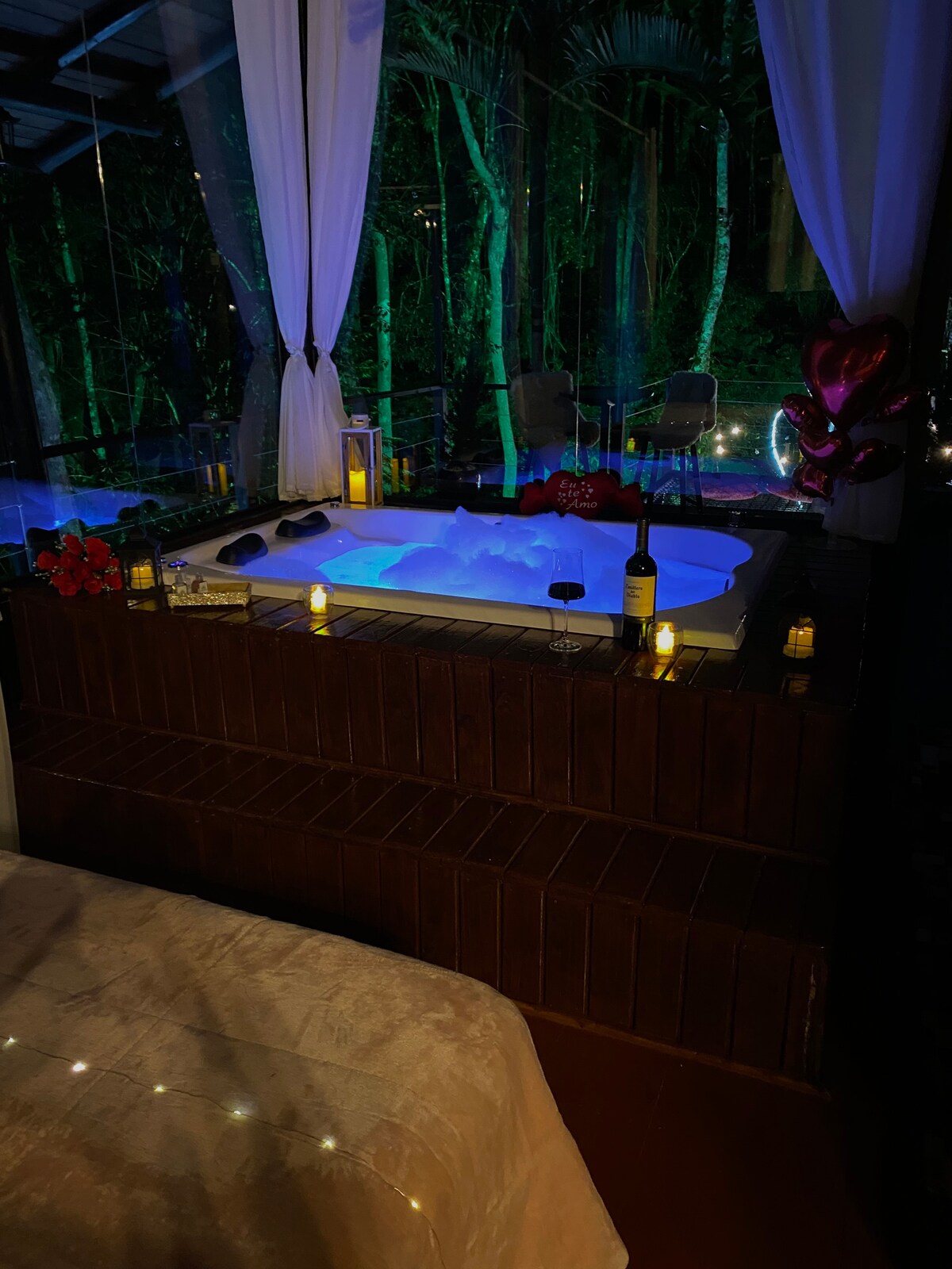 We are the @greenhouseexperience Exkluzív kiruccanás a természet közepén, mindössze 3 km-re a Jurerê Internationaltól. A pároknak tökéletes faházunk alapvető kényelmet kínál a természettel való kapcsolódáshoz, és felejthetetlen élményt nyújt. Pihenj a fákkal körülvett verandán, élvezd a száraz szaunát, a szabadtéri jakuzzit, és melegedj fel a fatüzelésű kandalló mellett. Az ingatlanban található egy lakóegység és egy másik víkendház is, ahol egy terápiás helyiség várja a vendégeket és a látogatókat.