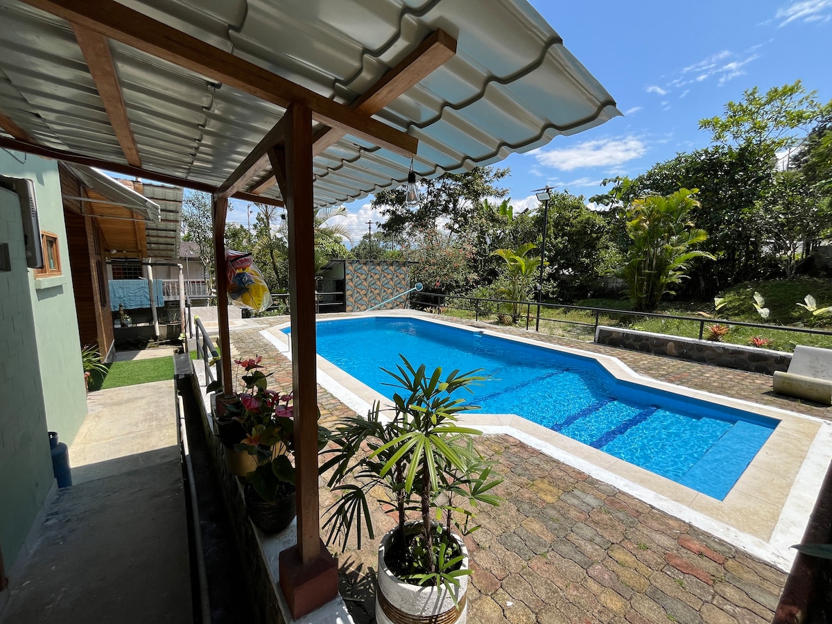 Ez a ház ideális neked és a családodnak! El Puyo belvárosától autóval 8 percre található, az Amazonas-esőerdővel körülvéve, természetjáró ösvénnyel és a Puyo folyóhoz való hozzáféréssel, így élvezheted a természetet, és feltöltődhetsz. A hely Látványos, 450 m²-es ház, modern és luxus stílusban, rendkívül kényelmes, természetes szellőzéssel. Száloptikás internet és Wi-Fi áll rendelkezésre. Szabadtéri pergolák nappali és étkezőrésszel. Parkolás öt autó számára. Elektromos kerítés, riasztó, biztonsági kamerák.
