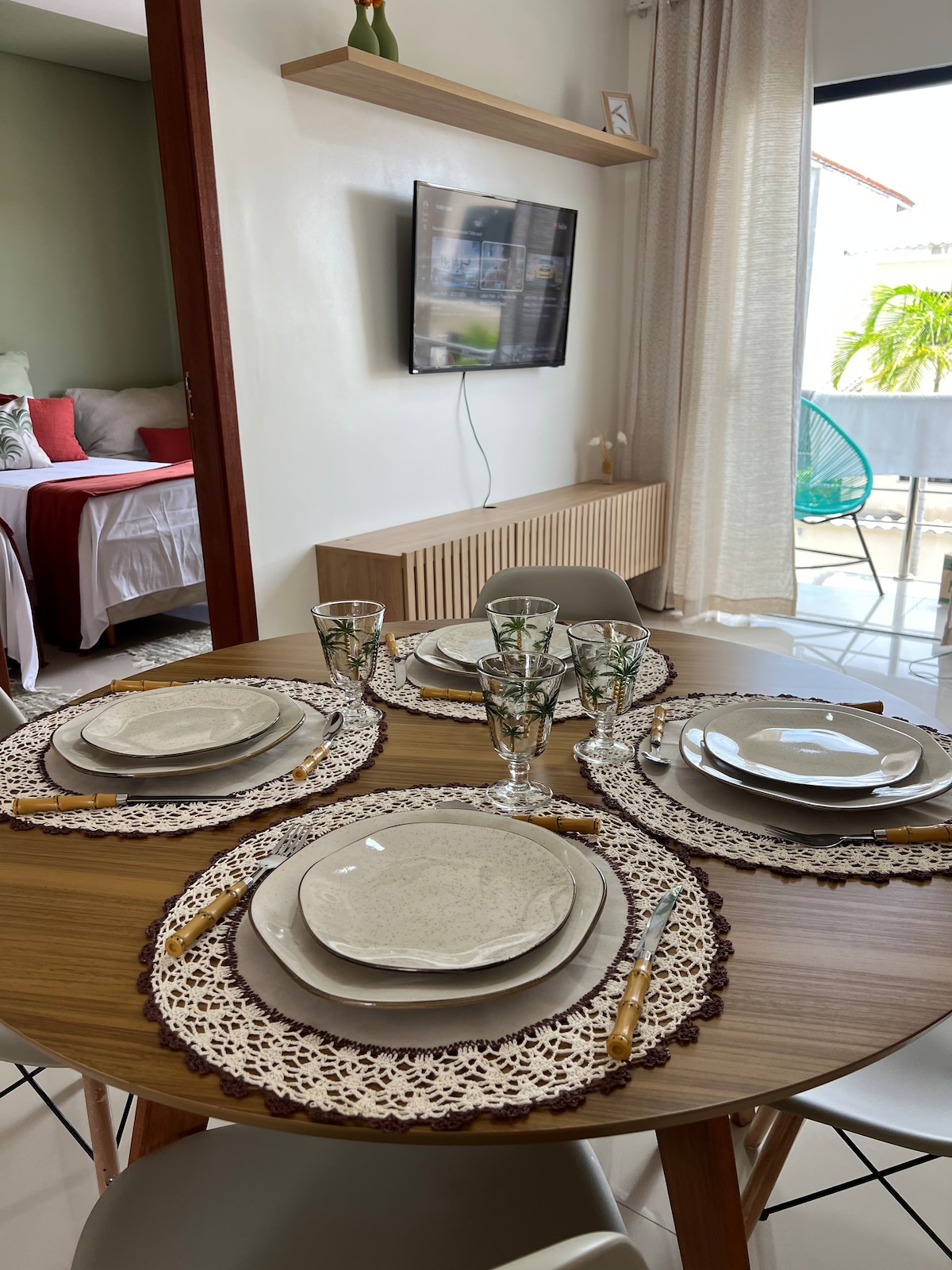 Leia com atenção toda a descrição 🤍 Venha viver a alegria da Bahia na CasaShê. Estamos apenas 400 metros da praia de Taperapuan, Barraca do Gaúcho em um condomínio que oferece portaria 24h e uma ótima piscina. Apartamento de 1 quarto com cama de casal e solteiro, ar condicionado, sofá cama, Tv Smart, cozinha totalmente equipada. 1 banheiro privativo e área de lazer compartilhada.