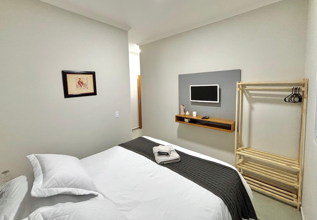 Stílusos szálláshelyünk tökéletes rövid vagy hosszú távú foglalásokhoz, L-alakú íróasztallal, frigobarral és Wi-Fi-vel. A légkondicionálás 22 000 BTU, Super King Orthopur ágy + további egyszemélyes ágy, porcelán kivitel és Smart TV Netflix-támogatással rendelkezik. A fürdőszoba tágas és modern, a vendég kizárólagos használatára szolgál. Bőséges szabadtéri hely áll rendelkezésre, ahol használhatod a konyhát, amelyet a házigazdákkal osztanak meg. A környék biztonságos egy előkelő területen, közel a Jaú Serve piachoz.