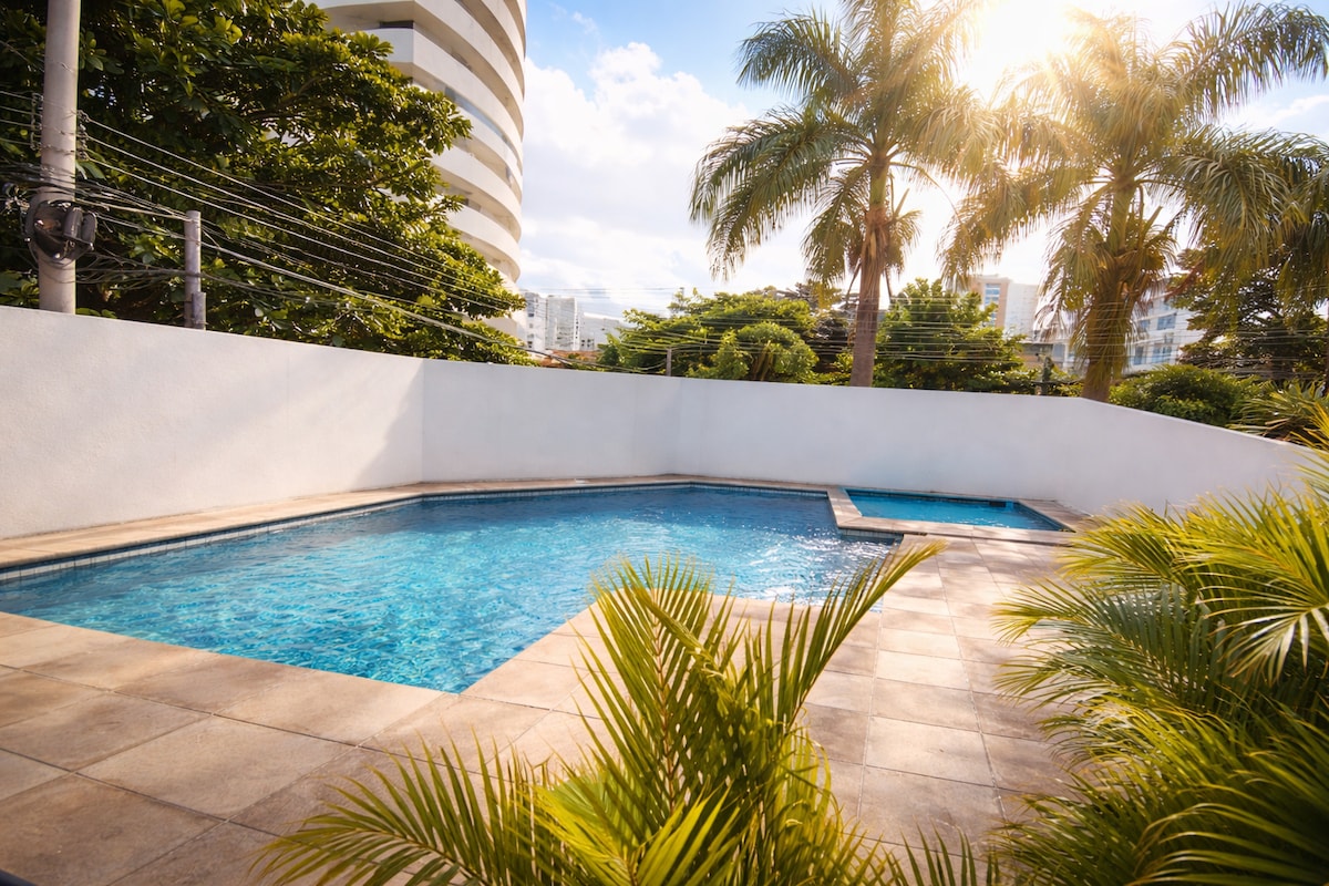 Éld át a szálláshelyedet a város egyik legjobb részén, egy csendes helyen, amely csak pár lépésre van a Ventura Mall egyik legmodernebb bevásárlóközpontjától, egy percre a szupermarketektől, gyógyszertáraktól, éttermektől stb. Av. Salvador/Calle G, Equipetrol. Rendelkezünk: - queen méretű ágy - Kihúzható kanapé - Luxus fürdőszoba - Étkező. - Felszerelt konyha - WiFi -Smart TV - íróasztal - Air Con Élvezni fogják a következőket: - Infinity Pool - Churrasquera - Cowork Wi-Fi-vel - Egy erkély - Mosókonyha