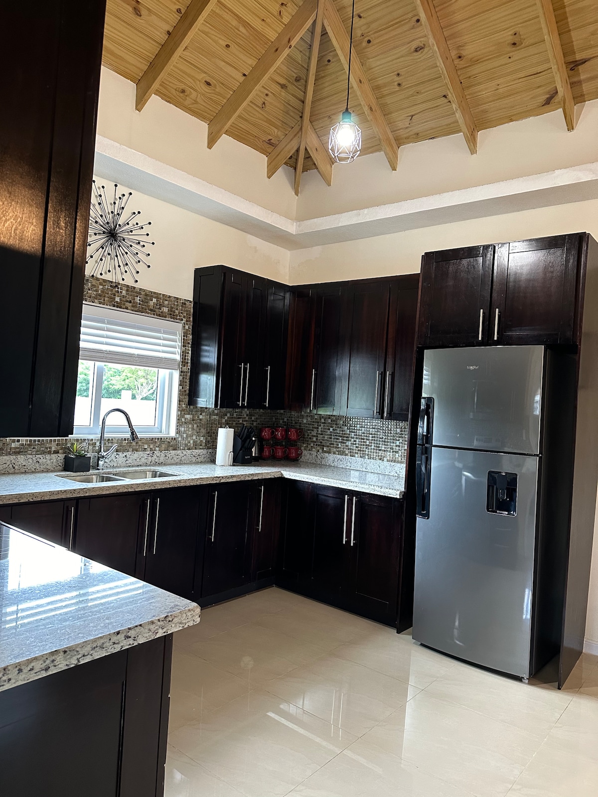 Seated in the heart of Santa Cruz, this luxurious modern, spacious two- bedroom, one-bathroom on the top floor of this building is the perfect getaway to relax with the whole family. Conveniently located within multiple Jamaican hotspots on the South Course, this home with breathtaking views from its gazebo and balcony will serve as the perfect escape while on your Caribbean stay. Enjoy watching movies on 75" television in living area/watch TV in your rooms; play domino, etc. with family.