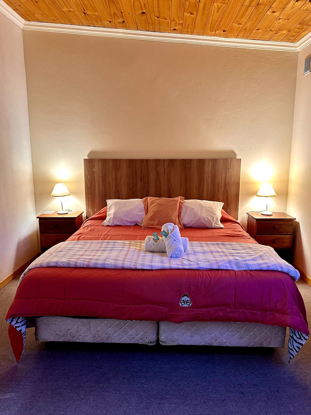Disfruta de compartir y conocer otros viajeros, sin resignar privacidad a la hora de dormir. Habitación doble con baño privado (12m2) en el Hostel Lago Argentino: -1 cama de 1,40 x 1,90 (matrimonial) 🛏️ -Entrada independiente 🚪 -Baño en suite 🚿 -Calefacción🔥 -Wifi 📶 -Luz de lectura 💡 -Enchufes multinorma cerca de las camas 🔌 -Desayuno☕ (sólo de Octubre a Marzo) -Toalla y jabón😶🌫 -Ropa de cama 🛏 -Espacios compartidos: cocina 🍽, living-comedor🛋, sala de co-working💻, jardines🌿