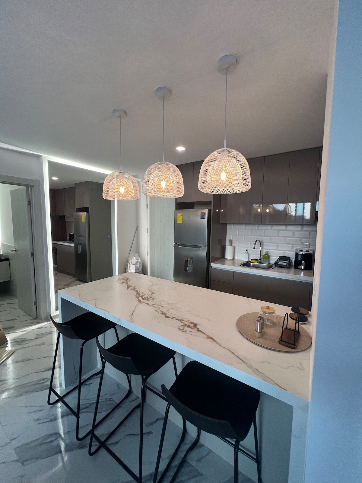 Tarts egy kis szünetet, és lazíts ebben a nyugodt lakásban. Suite 3C Sunrise, ideális pároknak vagy kis családoknak (2-4 fő). A Chipipe strandtól néhány lépésre található, és ötvözi a kényelmet és a stílust egy fő hálószobával, két teljes fürdőszobával, kanapéággyal felszerelt nappalival, felszerelt konyhával, okostévékkel, nagy sebességű Wi-Fi-vel és digitális zárral. Modern, funkcionális és tökéletes hely, ahol teljes kényelemben élvezheted Salinast.