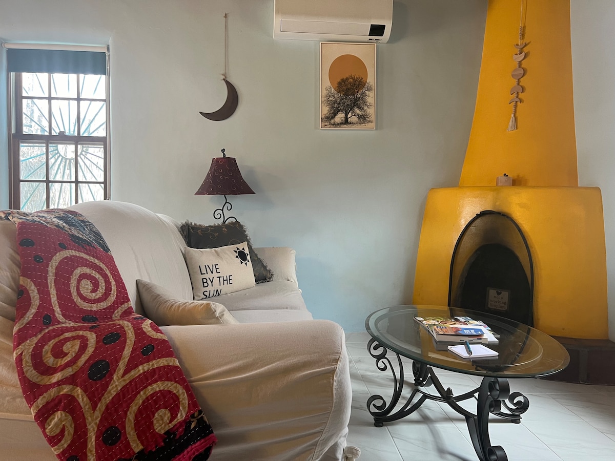 Napfényes vályogház kandallóval 1,2 mérföldre a plazától