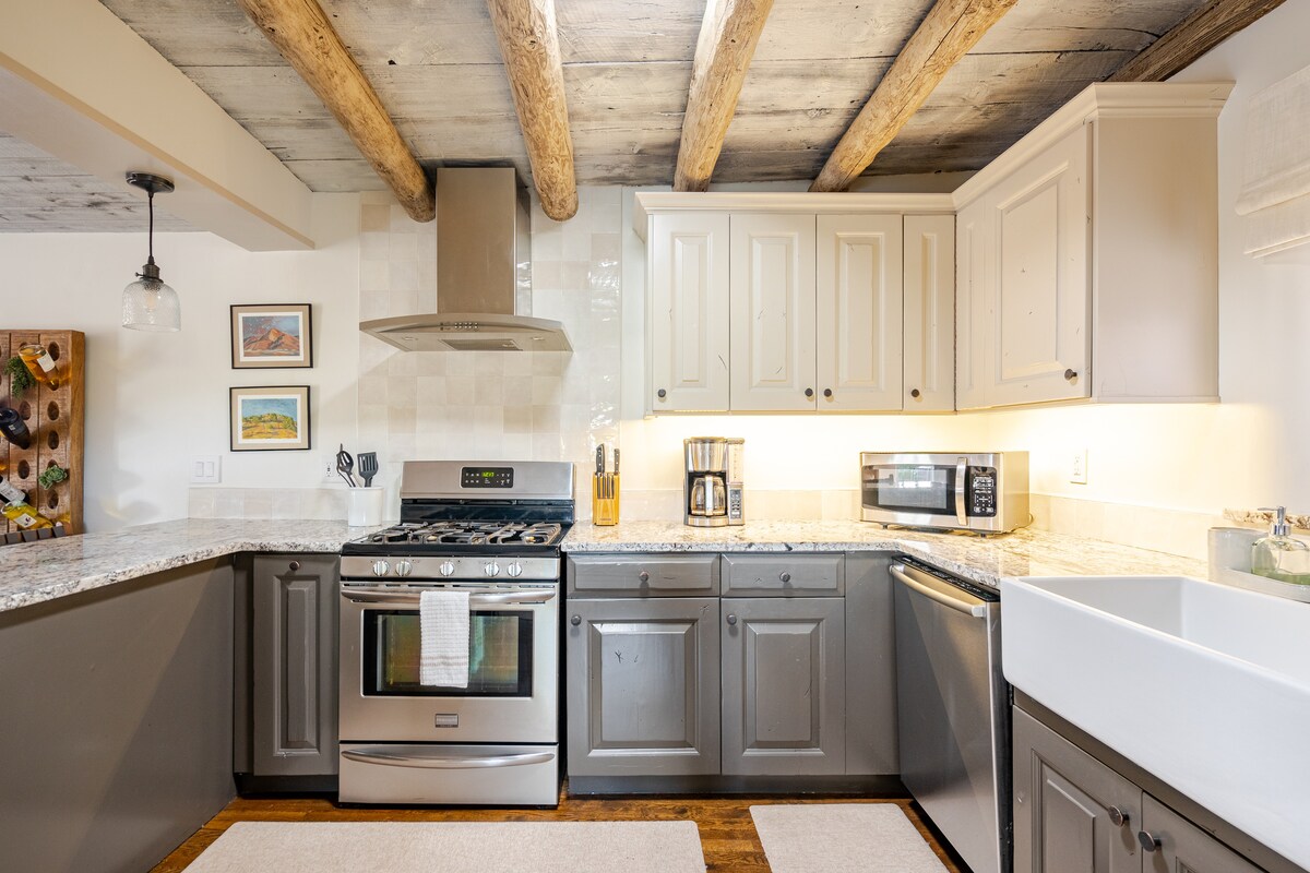 A Santa Fe folyó felett, kilátással a Sun és az Atalaya hegyekre, a bejárati ajtóról elérhető túraútvonalakra, valamint a Canyon Rd üzletei, galériái és éttermeire. Csak egy rövid sétára található a „Sage Haven”, amely az időtlen egyszerűséget és csendet helyezi el. A 2020-ban épült házban új, erős wifi, intelligens televíziók vannak AppleTV-vel, Bosch konyhai és mosodai készülékekkel, fatüzelésű kandallóval, teraszokkal, fényűző fürdőkkel és mélyen kényelmes alvással.