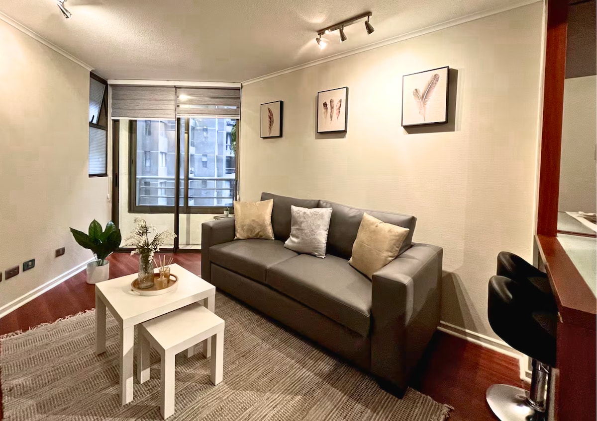 Modern és hangulatos lakás légkondicionálóval Santiago szívében. Néhány lépésre a metrótól és a történelmi központtól, múzeumokkal, piacokkal és éttermekkel körülvéve. King méretű ágy, felszerelt konyha, erkély és gyors Wi-Fi, ideális utazásokhoz vagy hosszú távú foglalásokhoz. Biztonságos épület éjjel-nappali portással. Személyre szabott figyelem, rugalmas érkezés és helyi ajánlások, hogy a helyiek szemével fedezd fel a várost, kényelmesen és nyugodtan.