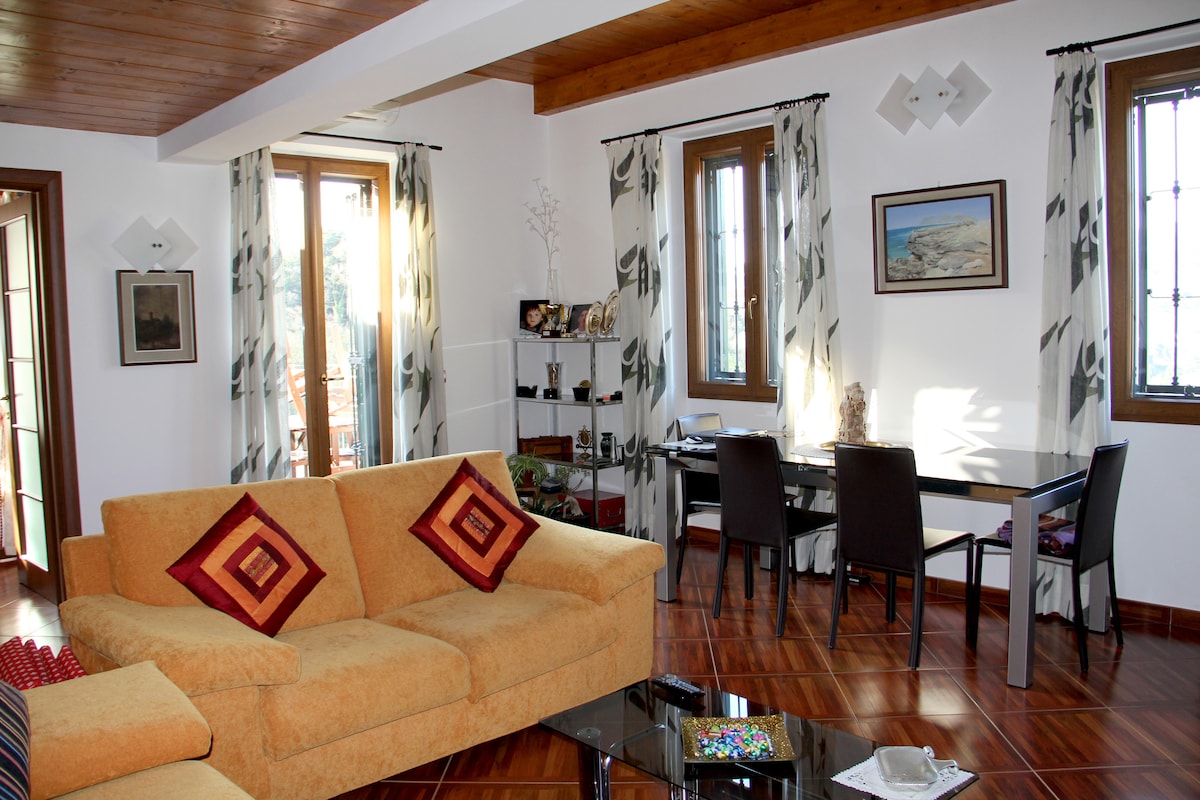 Giumin ház 260m tengerszint feletti magasságban a zöld dombok Cogorno, élvezi a csodálatos kilátás nyílik a Tigullio-öbölre és Portofino . A házban saját parkoló, privát bejárat, erkély és nagy terasz, kerti fatüzelésű sütő, grill és pezsgőfürdő; és két szinten oszlik meg. A földszinti bejárat, fürdőszoba, konyha és nappali, kilátással a kertre; a felső emeleti fürdőszoba és 3 hálószoba .