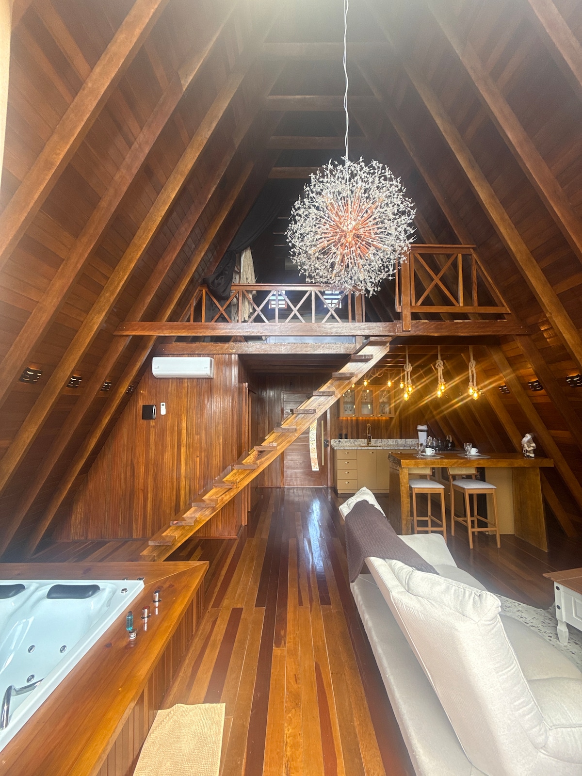 Nova Petrópolis belsejében található, a Nine Colonies nevű bucolikus faluban, 15 percre a központtól. Faházunk az araucaria fenyő őshonos fából készült, melegséget és kényelmet biztosítva vendégeinknek. A faház pezsgőfürdővel, panorámás kilátással, kandallóval, légkondicionálóval, 130 csatornás intelligens TV-vel, wifivel (száloptikás), teljes konyhával, valamint függőágyas fedélzettel és a völgyre néző kilátással rendelkezik.