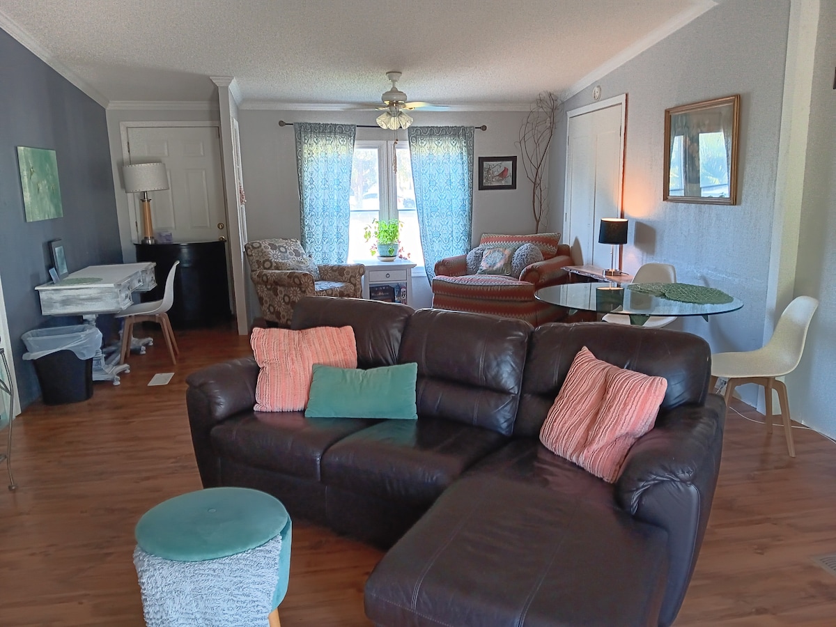 A tökéletes felnőtt elvonulás. Ez a 2 hálószobás, 2 teljes fürdőszobás otthon trópusi stílusú kerttel, nagy terasszal és egyedi kültéri bárral rendelkezik. 3,3 mérföldre vagyunk az I-10-es úttól. Lazíthatsz az európai stílusú könyvtárban, megnézhetsz egy filmet a 65hüvelykes Smart TV-n, vagy ihatsz egy hideg italt a szabadtéri bár területén. A kertben a teraszon lévő kávé a legjobb. Ha a környékre szeretnél költözni, van egy házon belüli ingatlanügynökünk, aki segíthet neked. 12 év alatti gyermekek számára nem megfelelő.