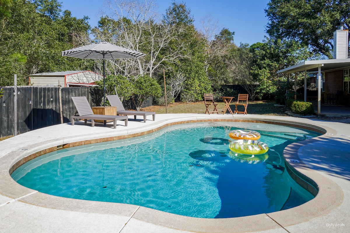 Fűtött medence, pavilon és tűzrakóhely. 3 mérföldre a strandtól!