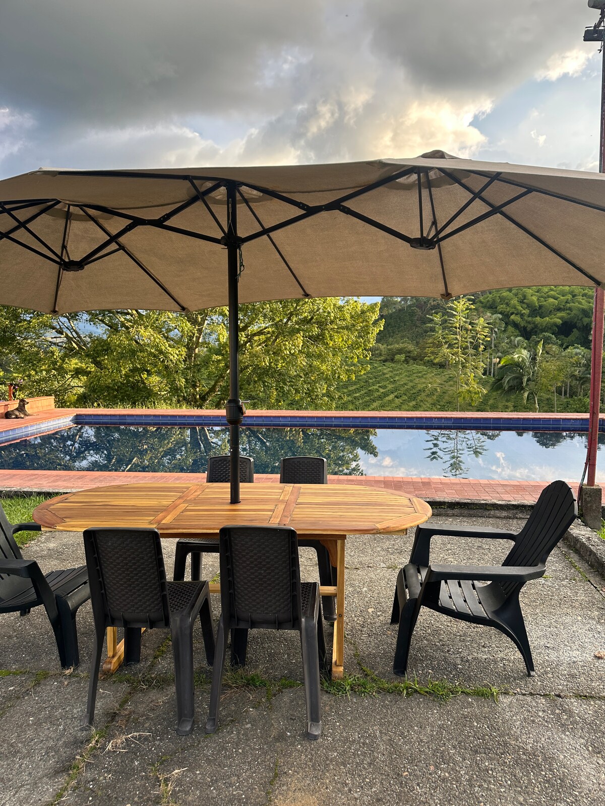 Bienvenido a nuestra hermosa de campo en el corazón del eje cafetero colombiano! En donde encontraras un ambiente tranquilo, cómodo, rodeado de naturaleza y privacidad para descansar. Nuestra casa ofrece una experiencia única para aquellos que buscan sumergirse en la tranquilidad y la belleza natural de la región. Estamos ubicados en zona rural, a pocos minutos de la ciudad lo que te permite explorar y descubrir la riqueza cultural y natural del eje cafetero y sus lugares turístico.