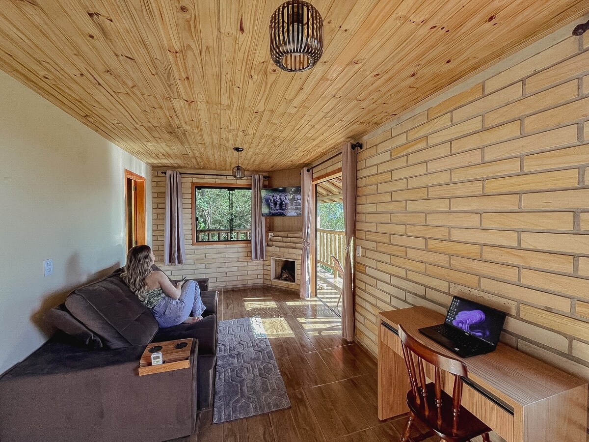 Cabana Varanda dos Canyons - Conheça este lugar único e tranquilo. Esta cabana charmosa oferece vistas deslumbrantes dos canyons, ideal para quem busca paz e contato com a natureza. Relaxe na banheira de hidromassagem olhando as estrelas, aconchegue-se junto à lareira nas noites frias, ou desfrute de um pôr-do-sol inesquecível no deck externo. Equipada com tudo o que você precisa para uma estadia confortável e memorável. Perfeita para quem deseja escapar da rotina e criar memórias duradouras.