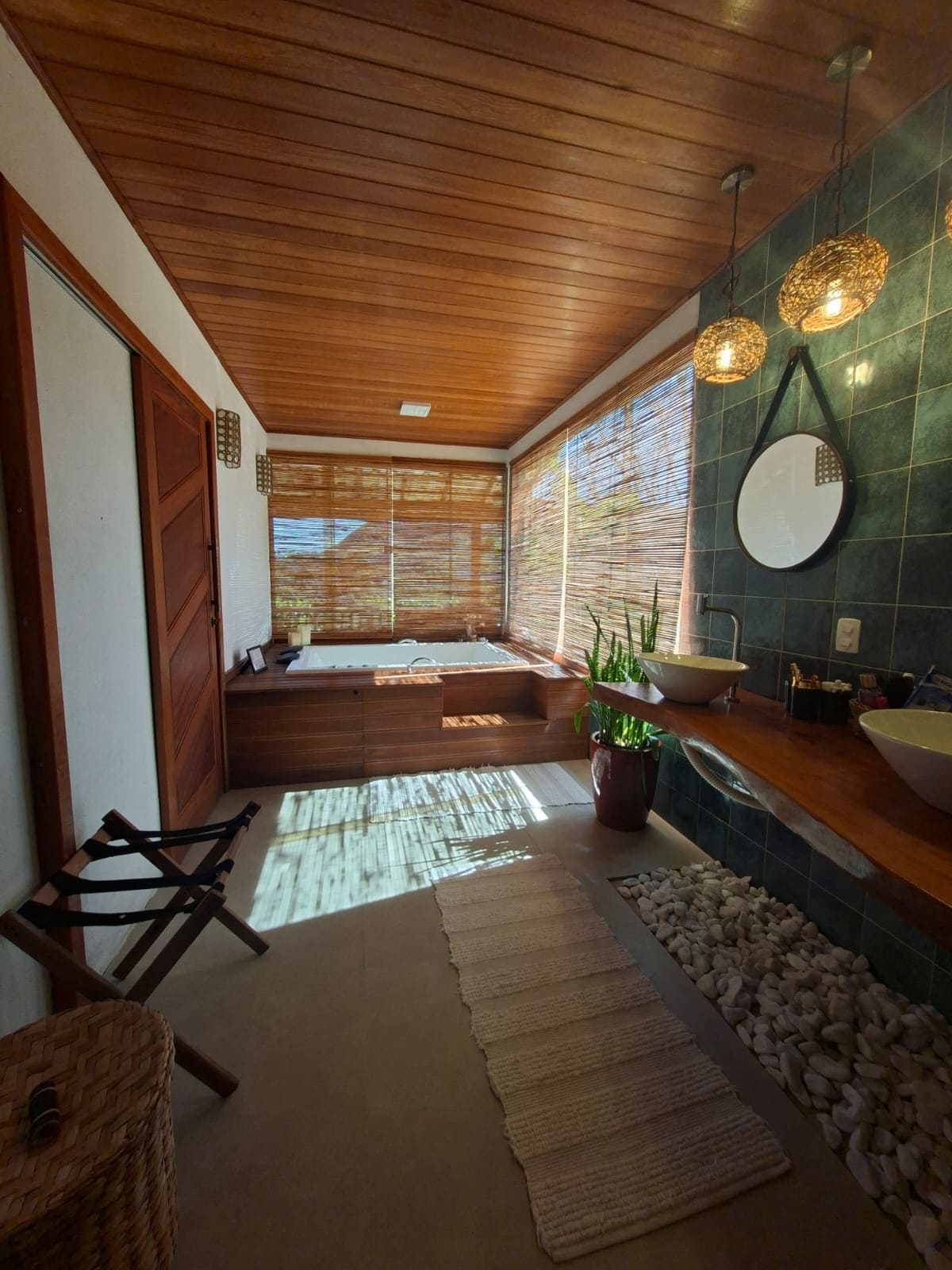 A Casa Reserva da Mata a természet közepén található. A gondosan fából készült környezet tökéletes arra, hogy a hétvégét egy párban vagy egy családban töltsd. Az ingatlan külső pezsgőfürdővel rendelkezik, ahol bort ihatsz, pihenhetsz és elmélkedhetsz a tájon. A ház bejárata a Santa Tereséhez vezető autópálya partján található, autóval 8 percre a Teresense sörfőzdétől és 20 percre a szabadidős utcától, 14 km aszfalttal a központig.