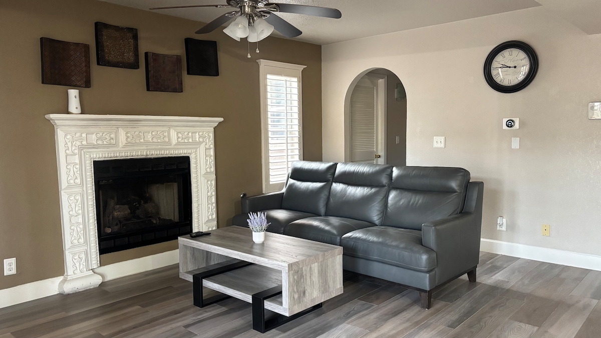 3 hálószoba, 2 fürdőszoba, nappali/étkező, konyha, terasz, mosógép és szárítógép, 3 intelligens HD TV, gyors Wi-Fi. West El Paso az I-10, UTEP, számos bevásárlónegyed és kórház közelében. • 1 db king méretű ágy • 1 db franciaágy • 1 teljes ágy (további díj az 5-6. vendég után) A konyha teljesen fel van szerelve teljes méretű hűtőszekrénnyel, tűzhellyel, mikrohullámú sütővel, kenyérpirítóval, kávéfőzővel, mosogatógéppel, főzőedényekkel stb.