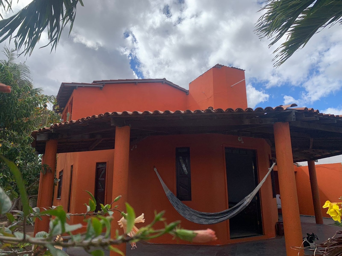 Bérelj egy bájos kis sarkot Santa Terezinhában (BA)! Ház 7 szobával: 1 hálószoba saját fürdőszobával, emelet saját fürdőszobával, kamra/konyha, 3 fürdőszoba és egy hangulatos erkély. Rusztikus légkör, természet, gyümölcsfák és gyönyörű virágos falfestmény. Ideális azok számára, akik békét, kreativitást és életminőséget keresnek. Vedd fel velünk a kapcsolatot, és egyeztess időpontot a látogatásra!