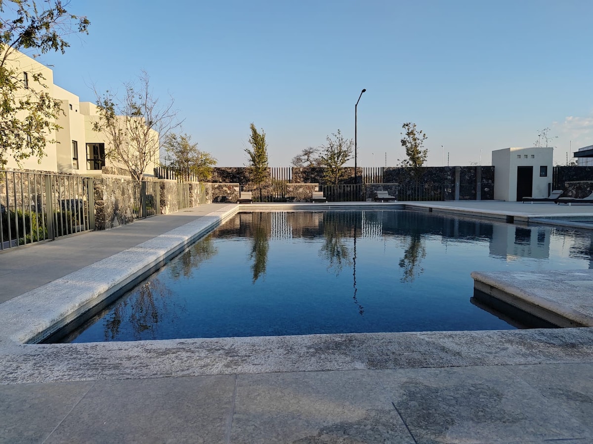 Béreld ki ezt a hangulatos társasházi lakást medencével és ideális kényelmi szolgáltatásokkal a következő nyaralásodhoz! Ez a gyönyörű hely 2 hálószobával, 2 fürdőszobával, teljesen felszerelt konyhával és egy nappalival rendelkezik, ahonnan kilátás nyílik a Queretaro vidékére. Pihenj ebben az Airbnb-szálláshelyen, amely nagyon csendes és kényelmes, és fel van szerelve, hogy kellemes élmény legyen. Számlát állítunk ki.