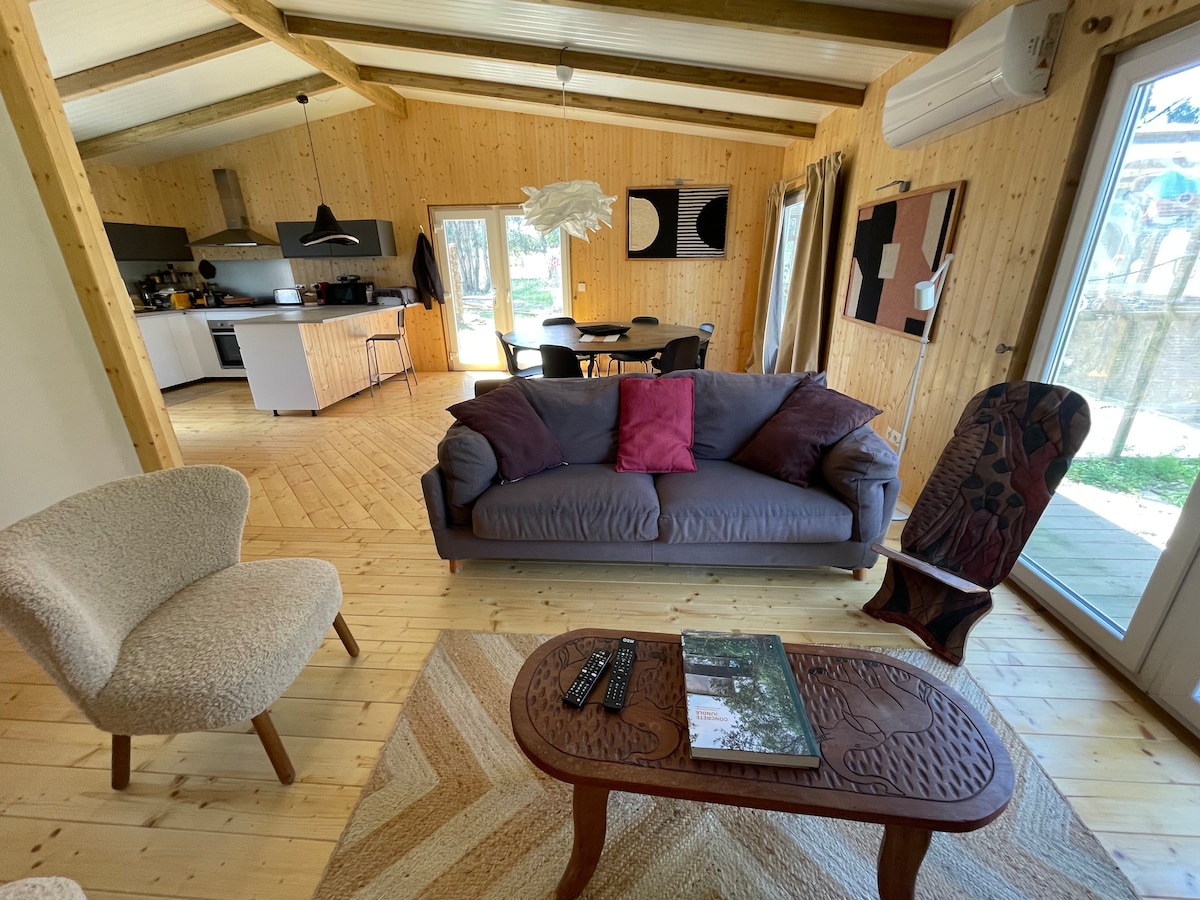 A 2024-ben épült, napos és tágas ingatlan nagy nappalival, galériával, terasszal, teljesen felszerelt konyhával, légkondicionálóval és modern fürdőszobával rendelkezik. Kanapéágy van benne, és mindössze 10 perc sétára van a strandtól és a belvárostól.