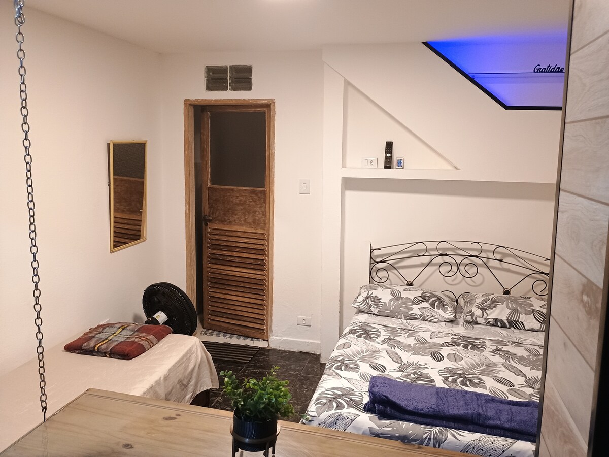 A Jardim Paulista negyedben vagyunk, az Ibirapuera Park és a Gimnázium mellett. A 45m2-es stúdióban franciaágy és kanapéágy, fürdőszoba, kis konyha, étkezőasztal és légkondicionáló található. Szükség esetén a kanapéágy mellett biztosítunk egy extra matracot is. Ingatlanunk három közös bejárattal rendelkező házra oszlik. Tekintsd meg a hely leírását, hogy megismerhesd az infónkat. A környezetünk ismerős, nem adunk ki bulikat. Olvasd el az utolsó vendégek által írt véleményeket