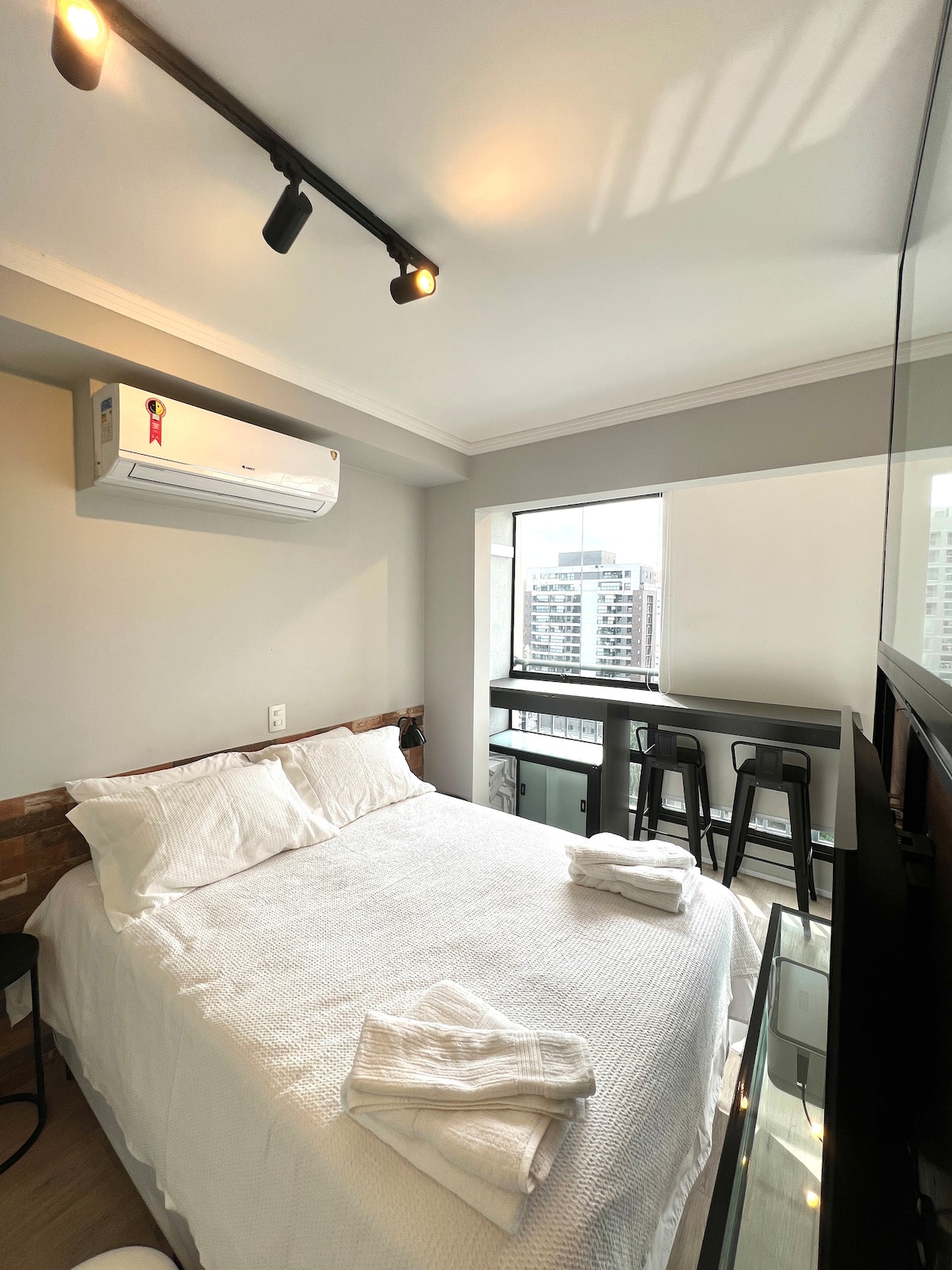 A 40 m2-es Loft Stúdió a kényelmes tartózkodáshoz, Concierge-szolgáltatással a recepción, valamint egy lakás minden kényelmi szolgáltatásával és kényelmi szolgáltatásával. A társasház legnagyobb üzeme (40m2) egy magas emeleten. Teljes szabadidő, fitneszközpont, jacuzzi, szauna, úszómedence, irodahelyiség, mini beltéri piac, garázs az értékben, mosoda és internet (az apartmanban és minden közös területen). Jó elhelyezkedés a vállalatok, rendezvények és metróhelyek közelében (Alto da Boa Vista és Adolfo Pinheiro állomások).