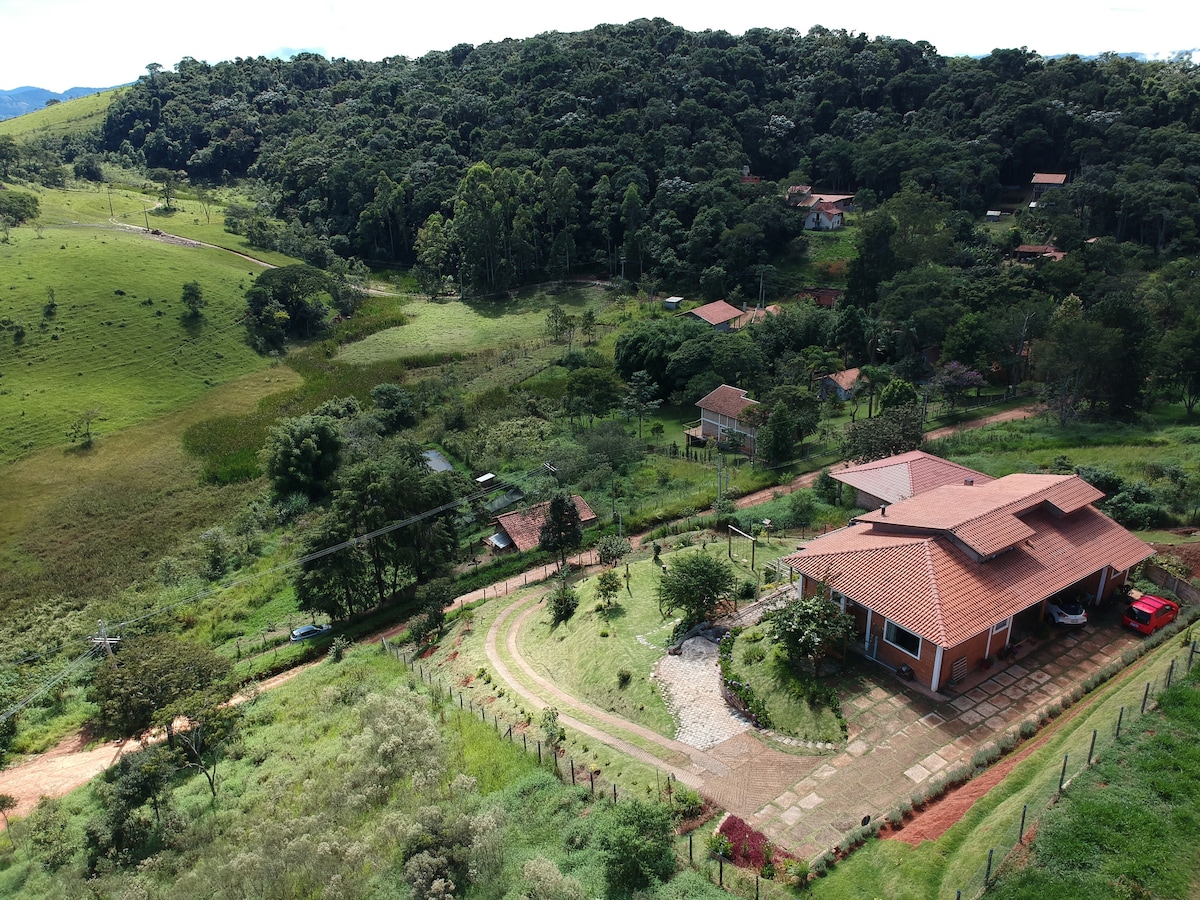 Serra da Mantiqueirában található az SP50-es autópályán, 1050 m tengerszint feletti magasságban és 30 percre C. do Jordão városától. Békés hely madarak hangjával és pihenésre alkalmas hellyel, beltéri kandallóval, ínyenc erkéllyel grillezővel és fatüzelésű kályhával, padlótűz a tűzrakóhely körüli találkozókhoz, hinták. Szálláshelyek akár 8 főnek, hegyre néző kilátással, szekrényekkel, egy kétszemélyes ággyal és egy vízikáddal. Egy második tágas szoba kétszemélyes ággyal, egyszemélyes ágyakkal és teljes fürdőszobával.