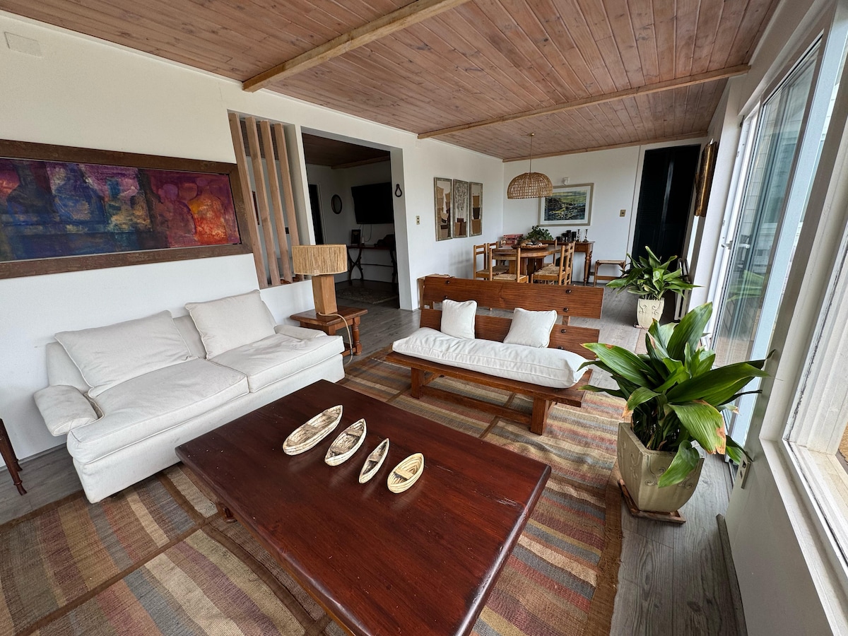 Crea recuerdos inolvidables en este alojamiento único y familiar. 5 Suites. Con amplios y armónicos espacios comunes, gran jardín, cómodo quincho, piscina, fogón, y hermosa vista. En el sector antiguo de Santo Domingo, balneario tranquilo y seguro. No tiene aire acondicionado porque NO necesita, cuenta con un sistema de corriente de aire por ventanales.