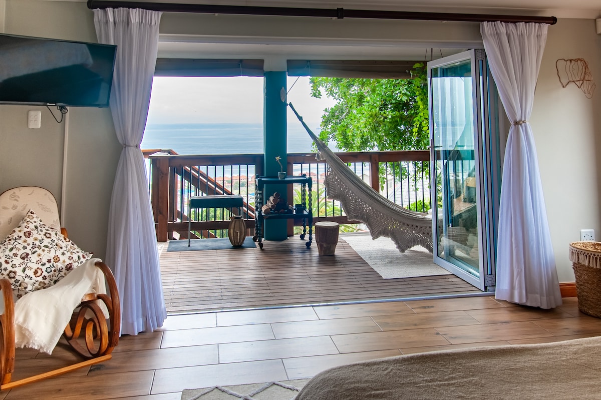 Welcome! Your Home Away from Home! Located in central Mossel Bay, our spacious new upgraded apartment boasts stunning sea and mountain views, perfect for families of four (2 adults, 2 children). Enjoy a large bedroom ( queen size bed) cozy living area with comfortable double sofa bed, and fully equipped kitchen. Relax by the pool and enjoy in/outdoor braai. Unlimited WiFi, Netflix, and DSTV, all you need for a perfect stay. Just 2.5 km from the beach and shopping, it’s the ideal getaway!