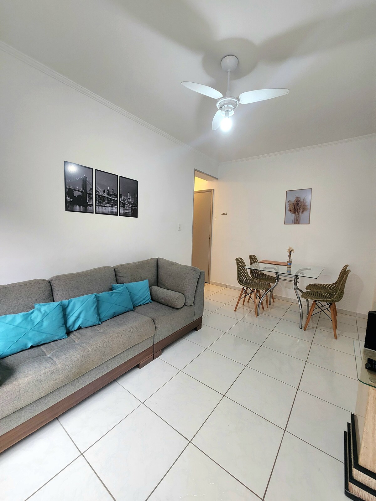 Fedezze fel a tengerpart előtt található modern apartman kényelmét, amelyből hihetetlen kilátás nyílik Santos és São Vicente strandjaira. Az épület a városok határán található. Tágas és jól szellőző, 1 hálószobás apartman, franciaággyal a hálószobában és 2 kanapéággyal a nappaliban, legfeljebb 6 fő számára. 24 órás portaszolgálat, biztonsági kamerák és lift. Wi-Fi, légkondicionálás a hálószobában és a nappaliban, valamint teljesen felszerelt konyha. Ágyneműt és törölközőt biztosítunk. Parkoló közös hellyel 1 autó számára. Nincs biztonsági háló az ablakokon.