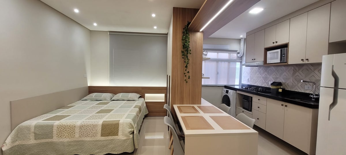 Tökéletes hely az angol Chácarában, az SBC elsőrangú területén! Legfeljebb 4 ember fér el benne. Teljes és otthonos, felszerelt konyhával, munkaállomással, streaming hozzáféréssel rendelkező Smart TV-vel, queen méretű ággyal, ikonikus tükörrel, törölközőmelegítővel és kifinomult dekorációval. Szolgáltatási területtel, integrált szobával és kiváló elhelyezkedéssel rendelkezik: 15 percre Sacomã - SP-től, 50 percre Santostól és 22 percre São Caetanótól. Az épületnek nincs garázsa, de a vendégek és a lakók gyakran nyugodtan parkolnak a közeli utcákban