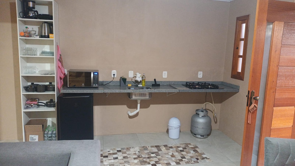 O Espaço Santa Rosa está situado a apenas 1,9 quilômetro da Catedral de Pedra, a 5 minutos (de carro) do Centro de Canela. Kitnet compacta de 24m² - com quarto climatizado quente e frio, cozinha e banheiro em bairro próximo à área central, com excelente localização! Seu pet de porte pequeno com vacinas em dia é bem vindo!! Temos cama de casal e sofá-cama para acomodar confortavelmente uma criança ou um terceiro hóspede.