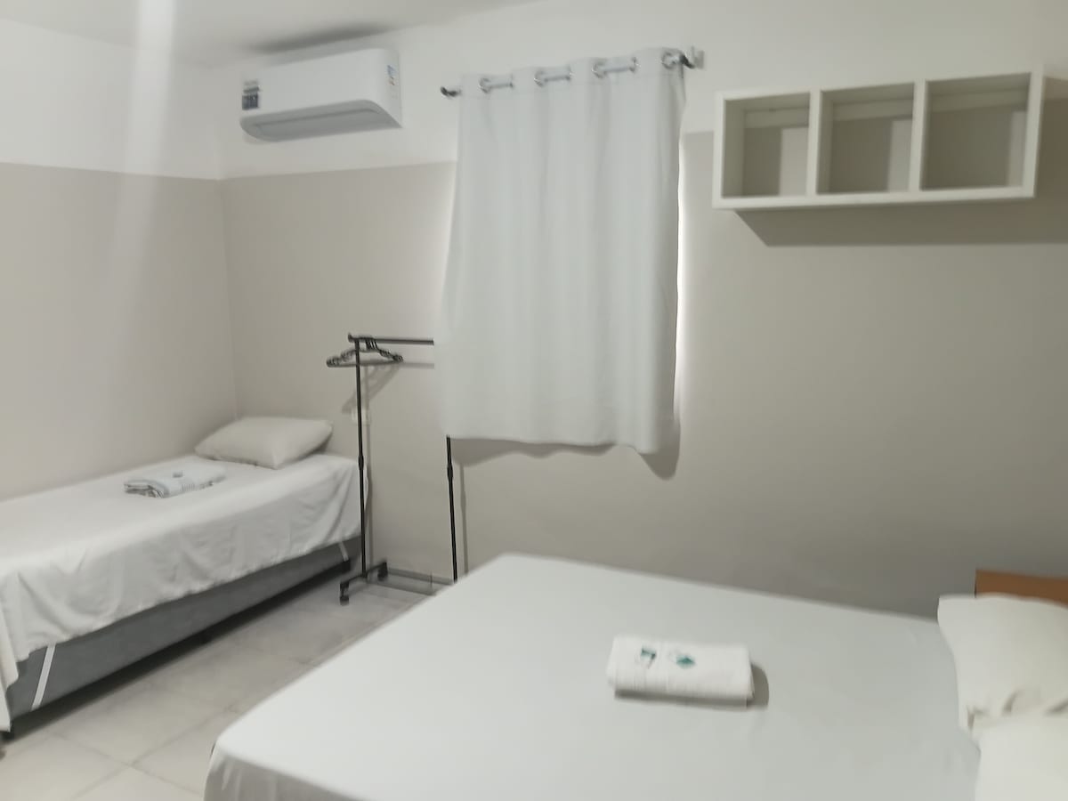 Szoba a Natal-RN repülőtér közelében. Ideális, ha nem akarod lekésni a járatodat, vagy ha csak pár napra utazol. A szobában légkondicionáló, vízadagoló, kávés sarok, Wi-Fi, privát parkoló stb. található.