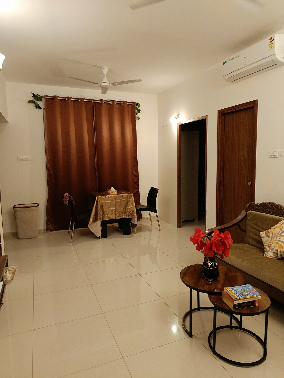 Kick back and relax in this calm, stylish space designed for 2 with all modern amenities to easy your holiday. Located just 8 min from Goa's Dabolim airport, the apartment nests in a residential society with 24 hours security. 3 beaches are in a radius of a 15 min drive. Amenities provided are: 2 split AC each in Bedroom and Living Room, LED TV 42 inch, Kent RO, Fridge, Bosh Fully Washing Machine, Hair Dryer, Tea Kettle, Toaster, Electric Rice Cooker, Induction Stove, Crockery and a geyser.