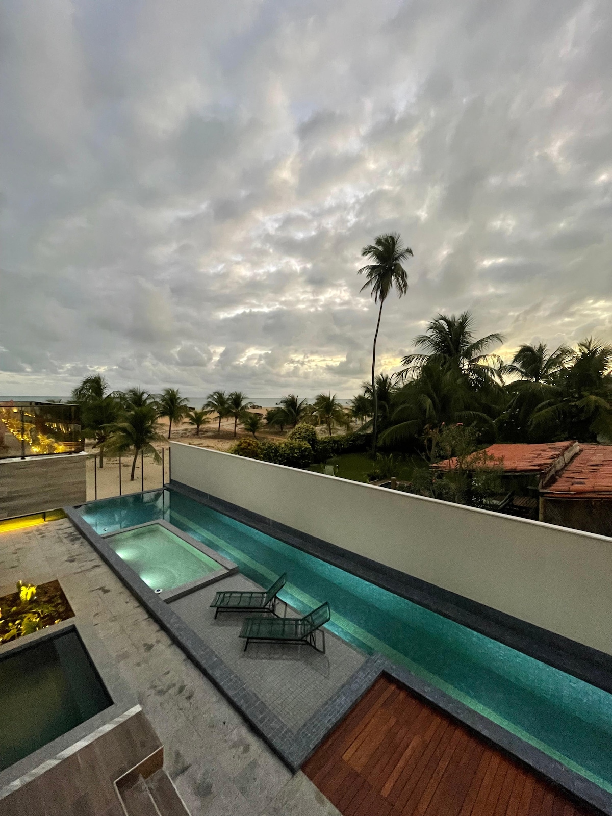 Stílusos és kényelmes, teljesen légkondicionált villa erkéllyel és terasszal egy társasházi lábon a homokban, kilátással a tengerre és a szomszédos kert fáira. A terasz saját jacuzzival és a Maceió strand gyönyörű naplementéjére nyíló kilátással rendelkezik. A társasház exkluzív, mindössze 4 házzal rendelkezik, és teljes szabadidős területtel, grillezővel és úszómedencével rendelkezik.