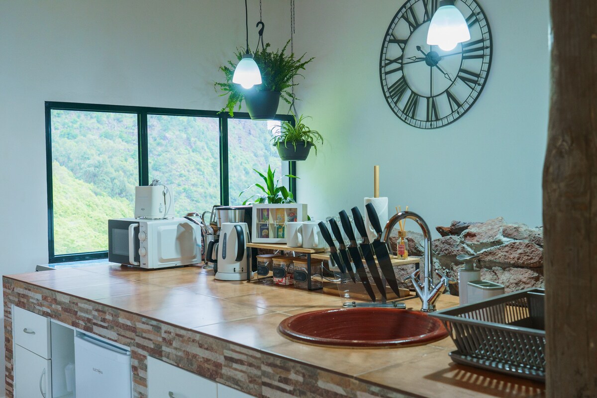 Egyedi hegyi szállás tengeri kilátással A madeirai São Vicente hegyei között elhelyezkedő privát szálláshely egy természetes szikla köré épült, és lenyűgöző kilátást nyújt a tengerre és a hegyekre. Teljesen felszerelt konyhával és saját fürdőszobás hálószobával rendelkezik. A természetben egy békés hely. Kérlek, vedd figyelembe, hogy a szálláshely egy gyönyörű, 2 perces levada ösvényen keresztül közelíthető meg az útról, ami kihívást jelenthet a mozgáskorlátozott vendégeknek. Jane és Adrian, a házigazdáid a szomszédban laknak, és mindig örülnek, ha segíthetnek.