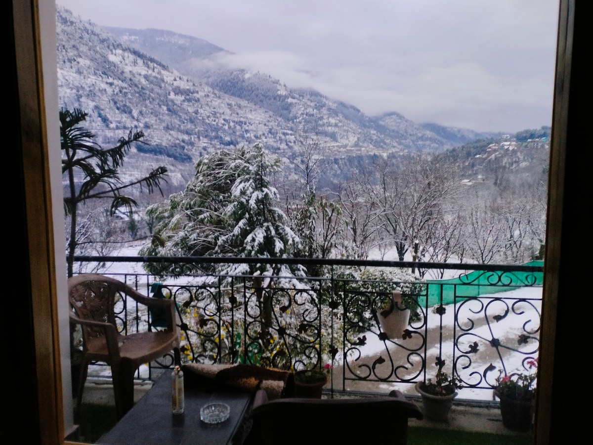Tökéletes otthon, amikor nyaralást vagy munkát tervezel a Kulluban. A teljes hely a vendégek rendelkezésére áll, beleértve a teljesen működőképes konyhát, a tágas szobákat, a festői erkélyt stb. Élvezheted a napodat a vendégfogadásban, vagy könnyedén felfedezhetsz számos közeli helyet. Reggel gyönyörű kilátás nyílik a hegyekre. A családunk a következő épületben száll meg, és elérhető, ha bármilyen információra/segítségre van szükséged.
