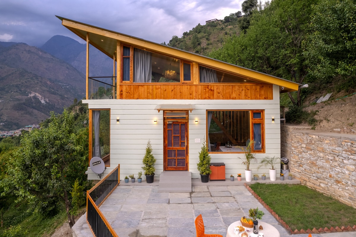 The Gemstone Retreat. (The Sapphire) Egy félreeső házikó a természet ölében, 360° -os kilátással a Himalájára. Az élet minden kellemetlenségétől távol ez a hely egyedülálló élményt nyújt a csupasz természetben. A házikó egy almáskertben található, több mint 5000 négyzetméteres kerttel, amely mind a tiéd. Az olyan létesítményekkel, mint a wifi és a házon belüli konyha, ez a hely tökéletes hely egy kiruccanáshoz.