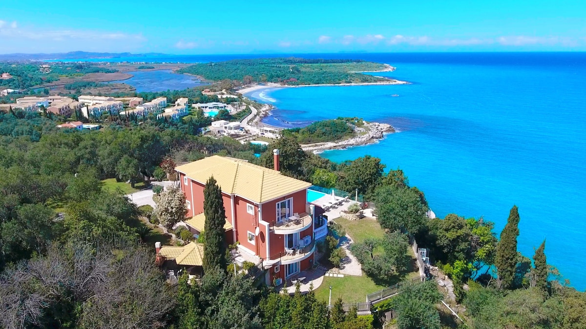 Upmarket 4 szobás villa az északkeleti parton Kassiopi falu és Szent Stefanos között.