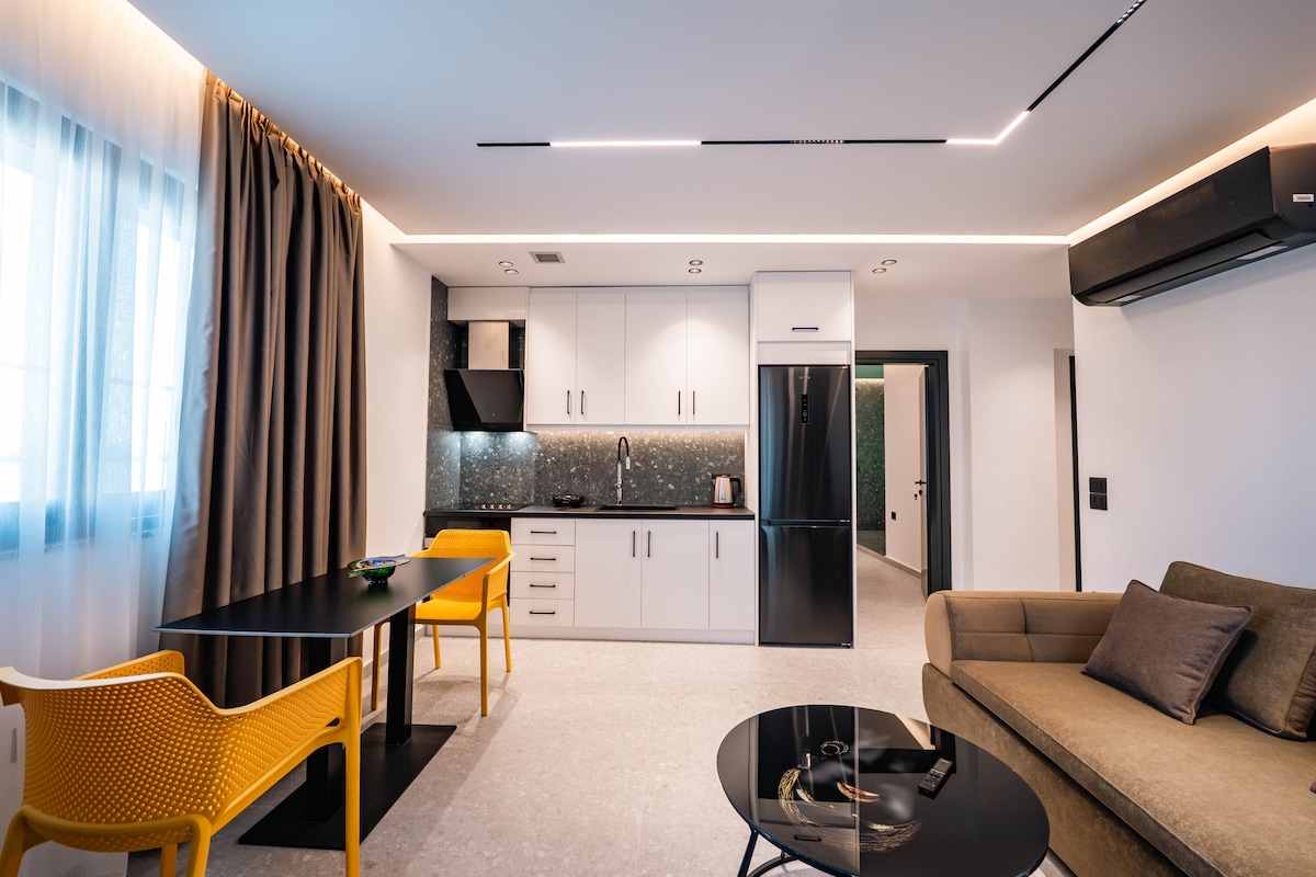 Experience comfort and elegance at Euphoria Apartments. This one-bedroom suite features a king-size bed, cozy fireplace, fully equipped kitchen, and stylish living room with stunning sea views. Relax in your private jacuzzi and enjoy a peaceful, romantic escape designed for unforgettable stays in Sarande city.