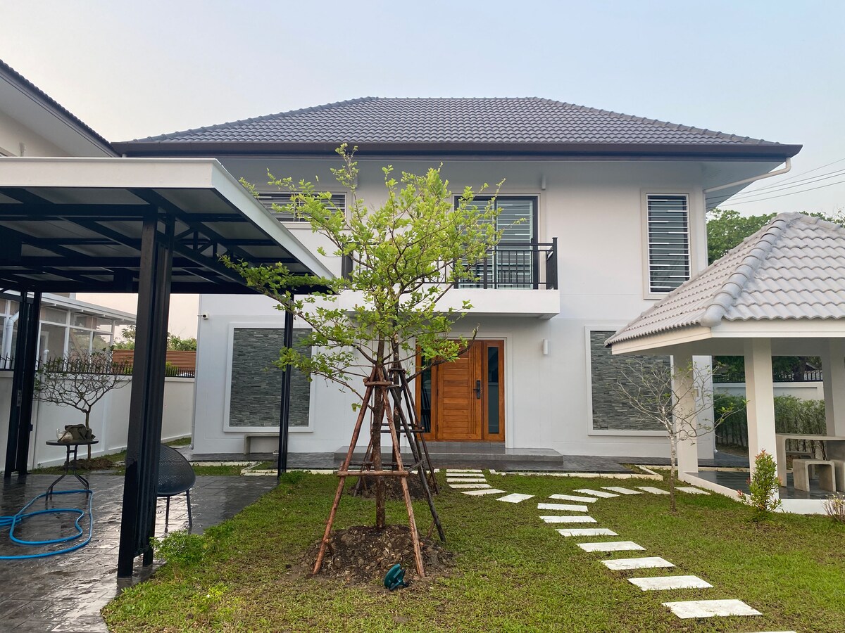 Az 1. körgyűrűnél található, könnyen megközelíthető a városközpont, a Ninman környéke és más turisztikai látványosságok, például az éjszakai szafari stb. A ház főútja mentén számos szép étterem és kávézó található a közelben. Stílusos, 4 hálószobás villa, világos és tágas, minden szobához fürdőszoba tartozik. Egy modern teljes konyha és egy thai konyha van hozzá csatolva. Nagy terasz a lazításhoz. Szép nyilvános gyep és nagy fa áll a ház előtt. Sós vizes medence 6*8 méter. A takarítónő kétnaponta gondoskodik a takarításról.