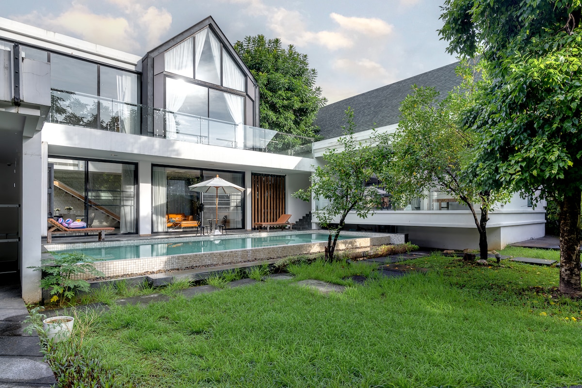 Experience Villa Yen, where mid-modern design meets homely comfort. Our villa offers a private 3-acre lawn, situated along the Ping River. Location Conveniently located just a 10-min drive from Chiang Mai Old Town and Chiang Mai Airport, our villa provides easy access to local attractions while maintaining a peaceful. And, just 3-min walk, you will find a local market, dining, and shopping options, ensuring you have everything you need close by.