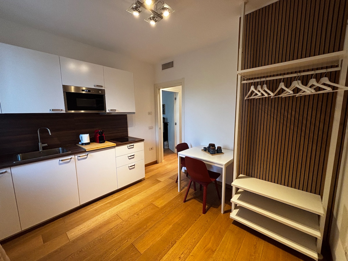 Magnificent accommodation with high-quality finishes located in the historic Piazza delle Erbe. The flat consists of: - Open-plan living room with dining table and sofas - Modern, fully equipped kitchen - Relaxation area with sofa and TV - Mezzanine with study desk - 2 bathrooms, one with glass shower cubicle and one with bathtub - 2 double bedrooms with queen-size beds - 1 double bedroom with king-size bed. The flat is only 30 minutes by train from Venice.
